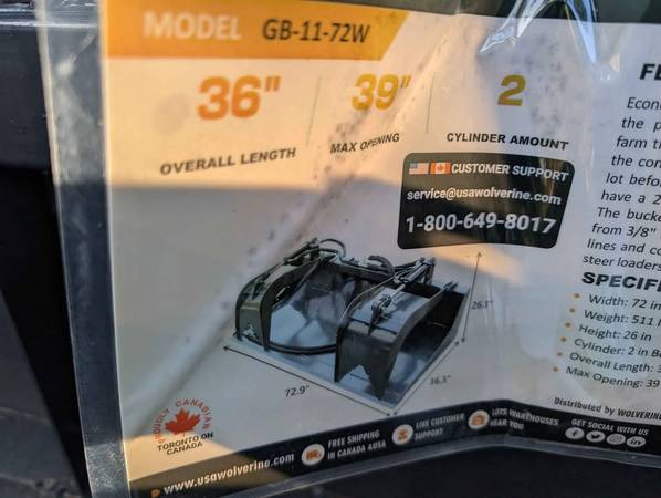 72" skid loader grapple Dual cylinder Universal quick attach Flat faced couplers
