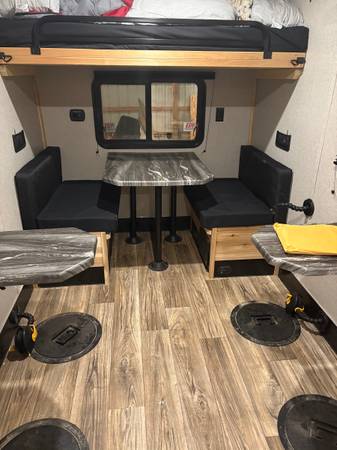 2022 Glacier 6.5x14 ice house. Model RD G Series. 2 bunks in the rear with table, side folding couch, cook top, roof vent, TV, 2 folding tables, sleeps 3 adults, 6 holes with rattle reels, 2 30lb...